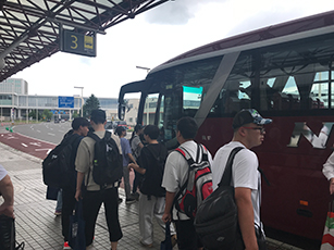 事務局スタッフから、本日のスケジュールや、1週間にわたる体験に関する諸注意が説明され、参加者たちは真剣な面持ちで耳を傾けていました。説明が終ると、参加者一同はバスに乗り込み、事務局スタッフとともに目的地である浦河町へと出発。車窓から広がる北海道の雄大な景色を眺めながら、参加者たちはこれから始まる牧場での生活に胸を膨らませていました。