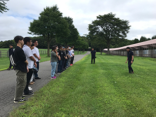ビッグレッドファームの見学を終えた参加者たちが次に訪れたのは、勇払郡安平町にある社台スタリオンステーション。ここは日本を代表する種馬場のひとつで、多数の種牡馬を繋養していることから競馬ファンなら誰もが耳にしたことのある有名な施設です。